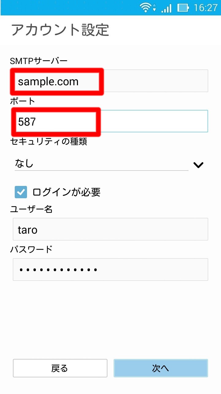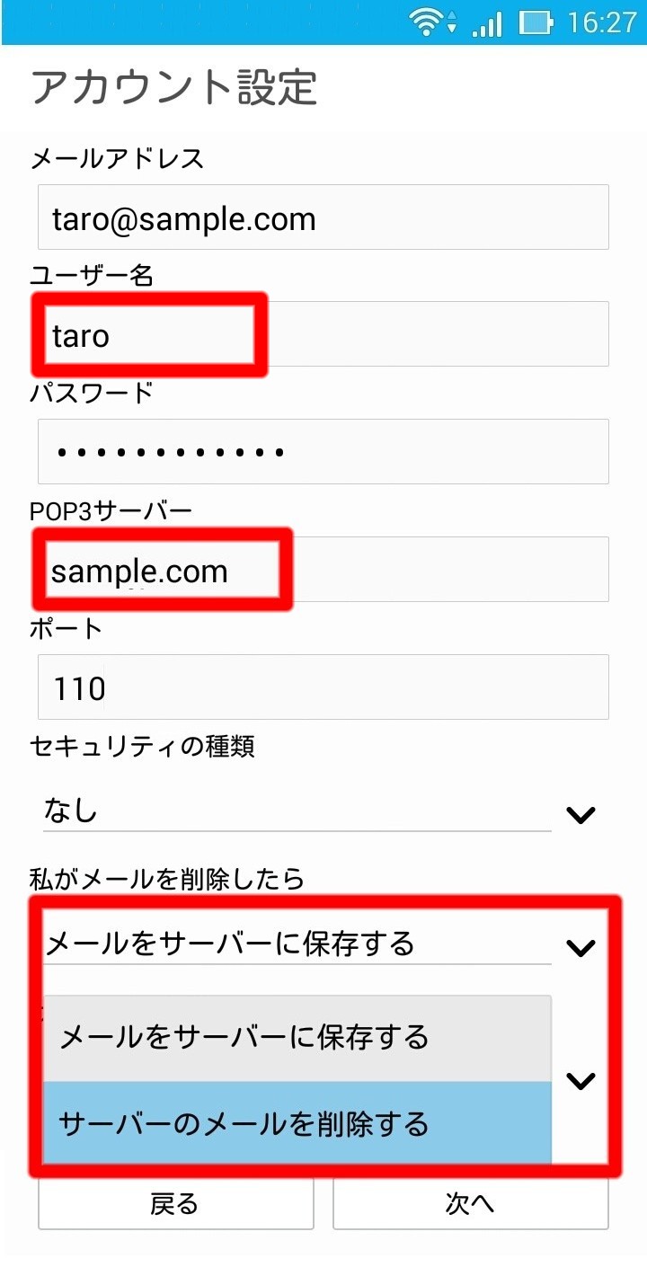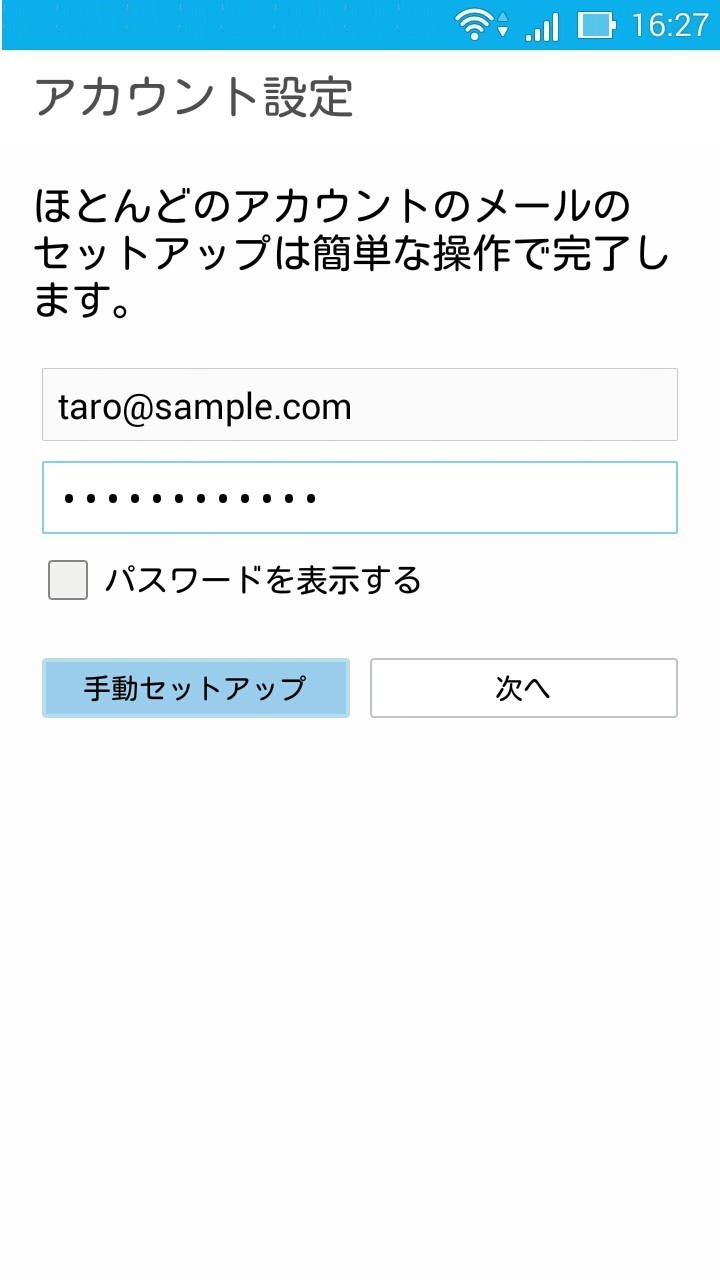 以下は Nexus Android4.X 標準のメールの設定方法です。