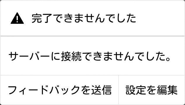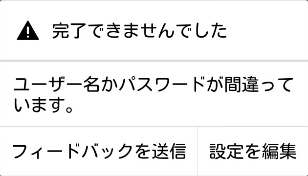 次のようなエラーが出たら、「設定を編集」を選択して、設定を見直して下さい。