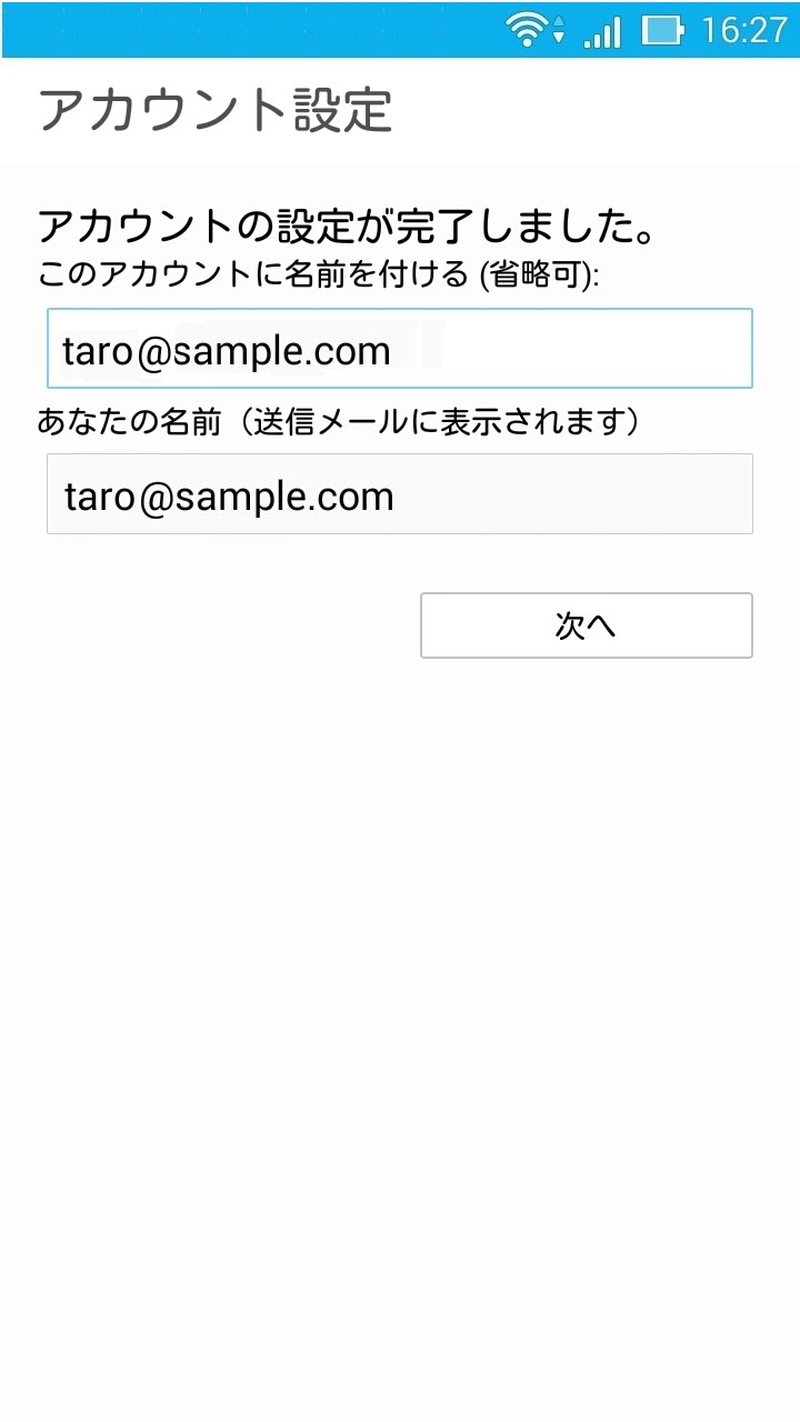 メールアプリ上で使用する名前です。必要に応じて名前を付けてください。
