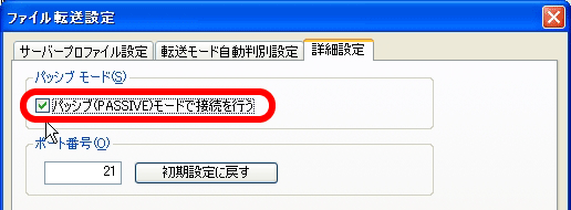 ご参考:接続できないとき、時間がかかるときは、設定の際に「パッシブモード」に設定してみてください。