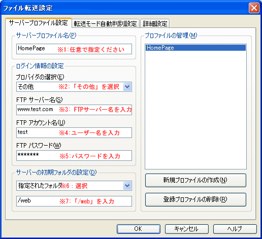 ※5 FTPパスワード 、「設定のご案内」に記入された、パスワードを入力してください