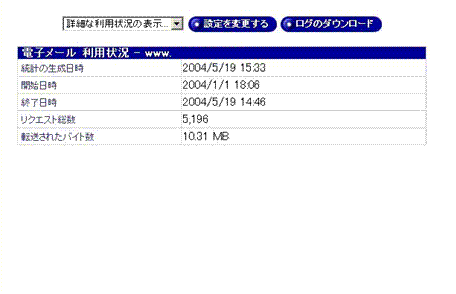 リクエスト総数と転送バイト数が表示されます。