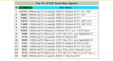 訪問者の使用ブラウザ関連の情報が、パソコンの種類、OS、などの情報がベスト15程度ほど報告されます。