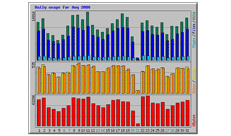 指定月の、毎日のアクセス状況が棒グラフと、表でわかります。