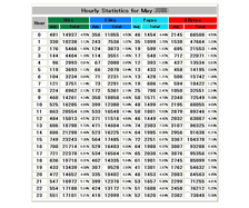 各時間帯ごとのアクセスの状況が表とグラフでわかります。