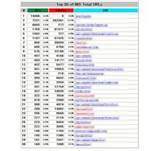 Hites数、KByte、URLが、パーセンテージとともに表示されますので、転送量のチェックにも使えます。