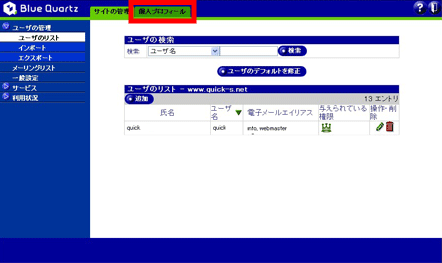サイト管理者以外のユーザ名でログインすると、初めからこの「個人プロフィール」のページになります。