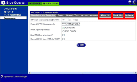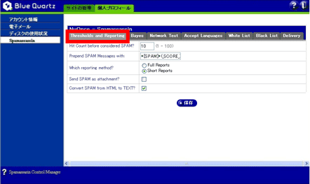 スパムフィルタの効果の調整、機能の一部変更などが行えます。[