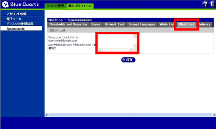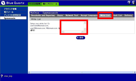 ※ スパムフィルターンのコントロールパネルは、英語表示になります。