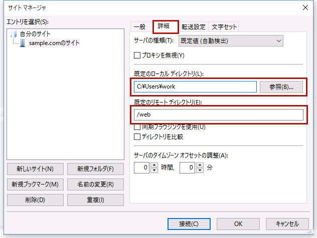 【重要】ホームページを転送する前に、正しくローカルとホストのフォルダが指定されているか、確認してください。