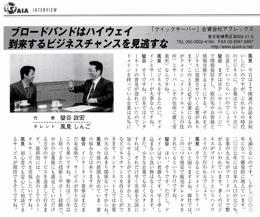 ◆【月刊ガイア 2004年2月号】でクイックサーバーが紹介されました◆