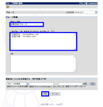『保存』ボタンをクリックするとグループが作成されます。 |
