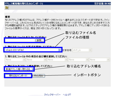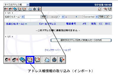 『アドレス帳情報の取り込み(インポート)』ボタンをクリックします。 |