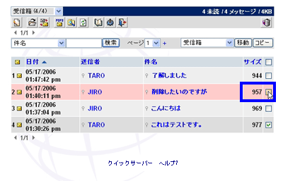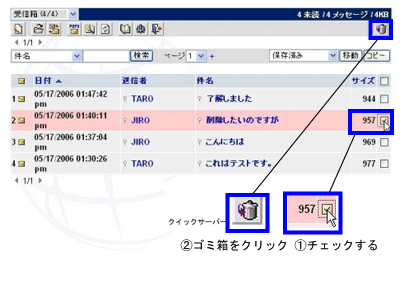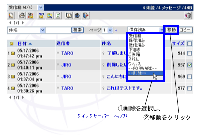 (1)削除するメールの選択