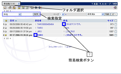 検索指定ウインドウや、簡易検索ボタンが使用できます。