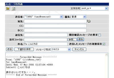 「原本として転送」とすると、送信もとの情報が本文に記載されません。