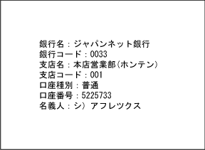お振込みに指定している銀行口座は、以下のとおりです。