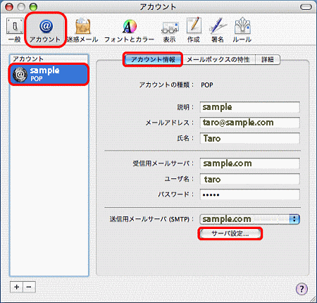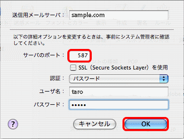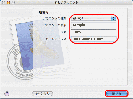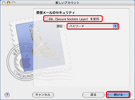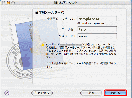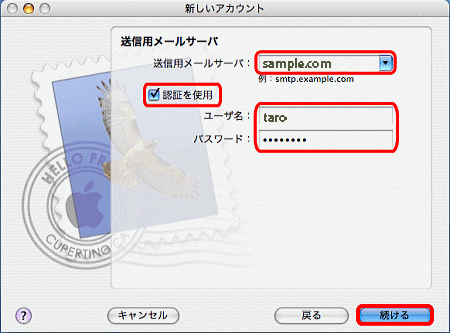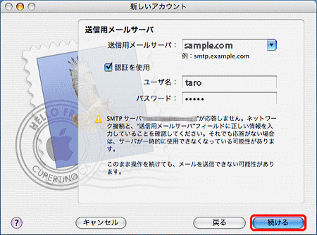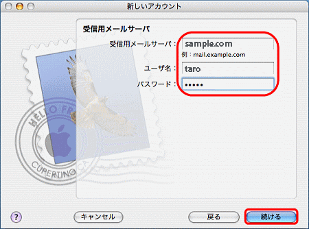 メールサーバーや、カウントのパスワードを入力してください。 |