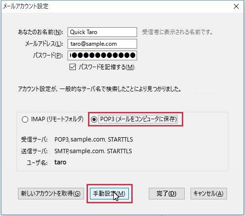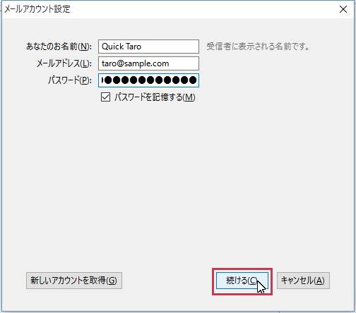 以下は Thunderbird Ver.38 以降の場合のメールアカウントの設定方法です。