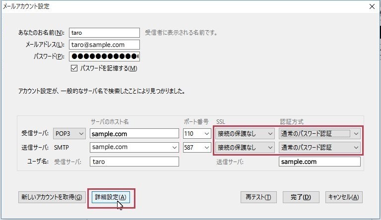 赤枠のところに特に注意して、設定・確認したうえで 「詳細設定」 を選択します。