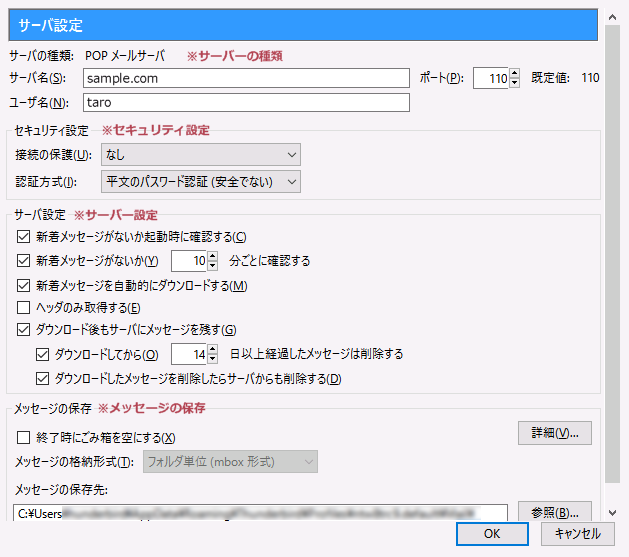 ※サーバーのホスト名は、受信サーバー名と同じ設定にします。
