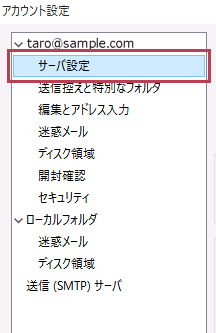 画面左側の「サーバー設定」を選択してください。すると、次の画面が右側に表示されます。