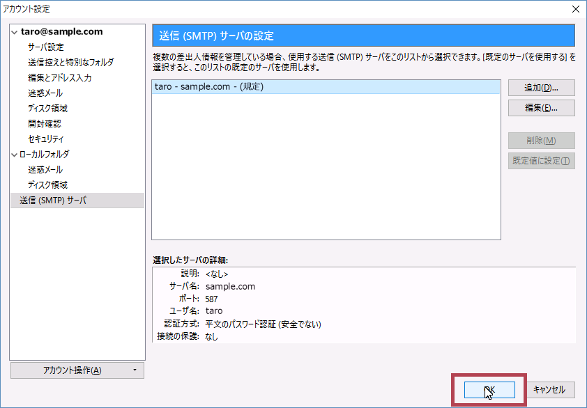 7. 「詳細設定」から、「サーバー設定」を確認します。